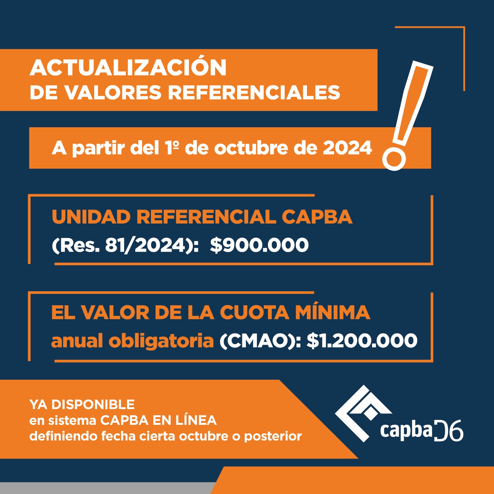 A partir del 1° de octubre de 2024 Unidad referencial CAPBA – (Res. 81/2024): $900.000El valor de la cuota mínima total obligatoria – (CMAO): $1.200.000 Ya disponible en sistema CAPBA […]