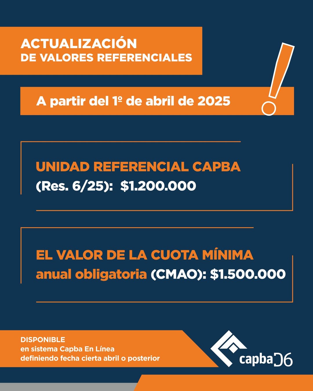 Actualización de Valores Referenciales – A partir del 1° de abril de 2025 Unidad Referencial Capba (Res. 6/25) $1.200.000 El valor de la cuota mínima anual obligatoria (CMAO) $1.500.000 Disponible […]