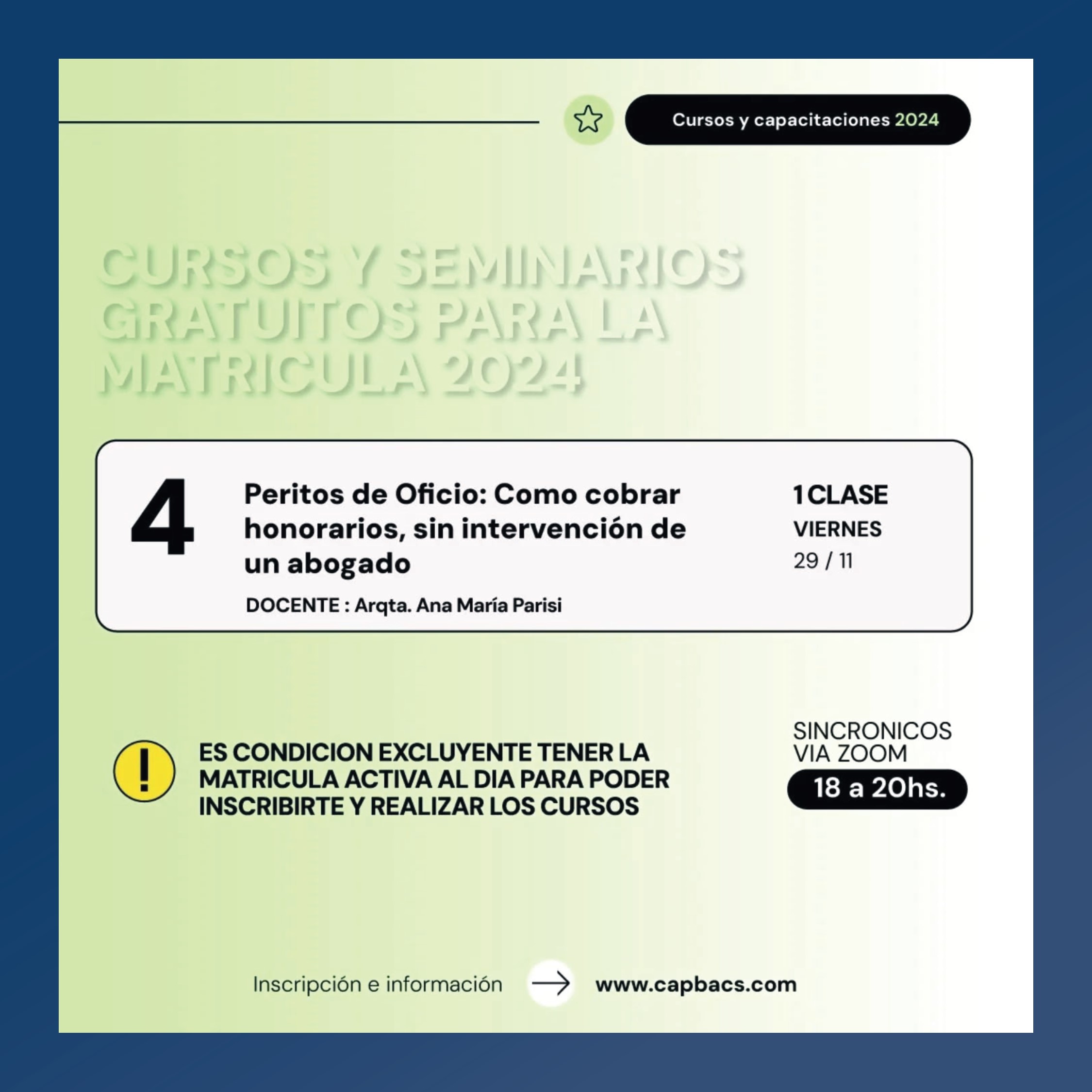 Atención matrícula CAPBA ya podés inscribirte a los cursos de Noviembre